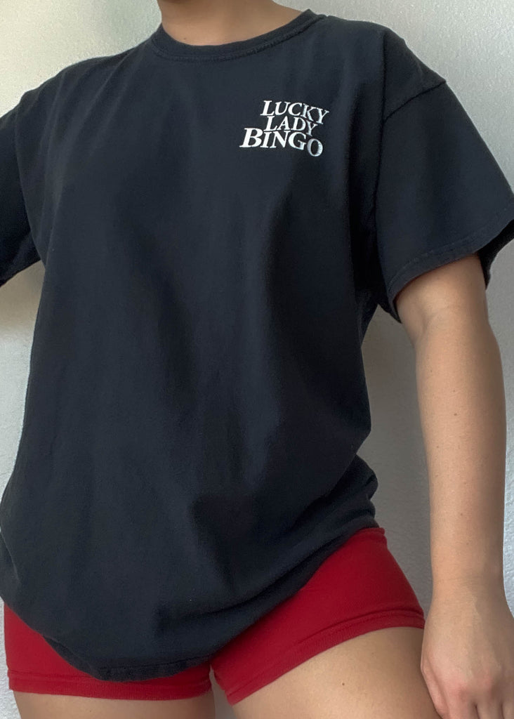 2000’s black Lucky Lady Bingo t-shirt with graphics on the chest & back